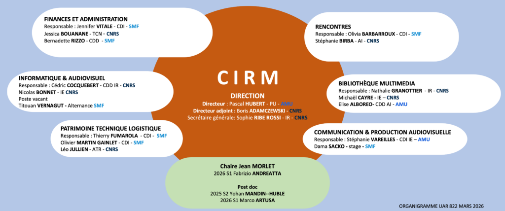 To contact us by mail : firstname.lastname@cirm-math.fr